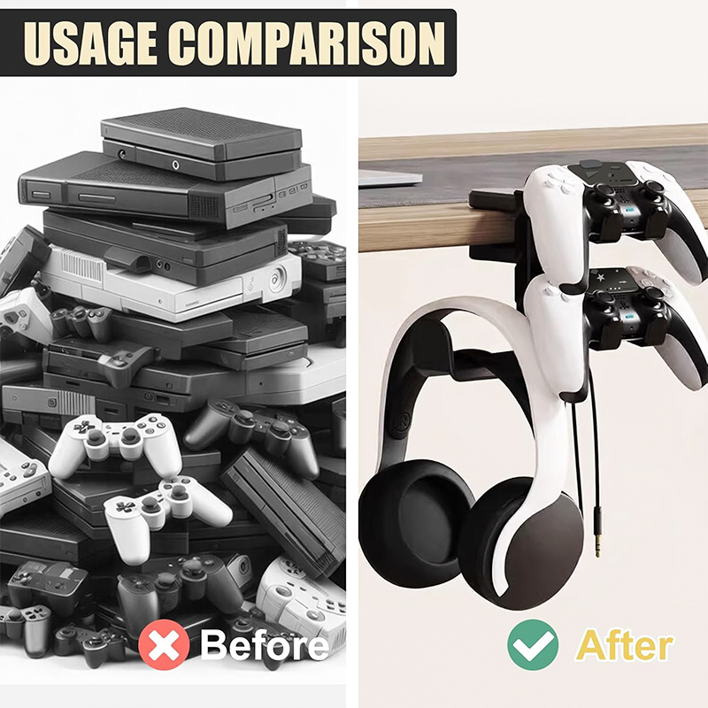 The cleverly designed hook allows you to hang your headphones and controllers in different positions, providing quick and easy access to your devices.