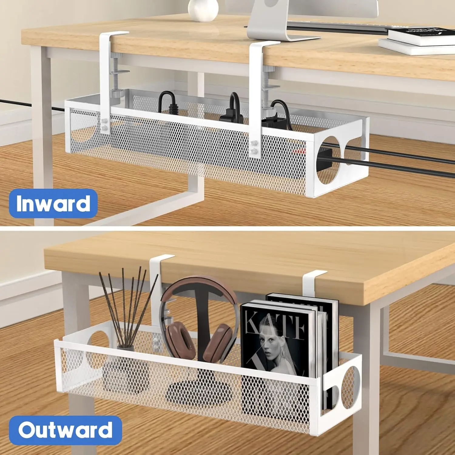 BaiChen’s workstation dual-port power strip rack and under-desk cable management tray