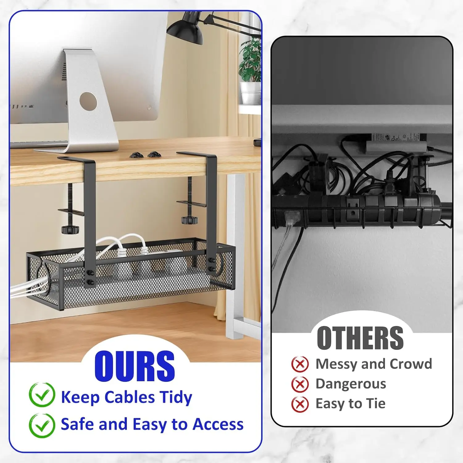 - This cable management tray features an innovative no-drill design with extended clamps for easy installation under tables in various scenarios.